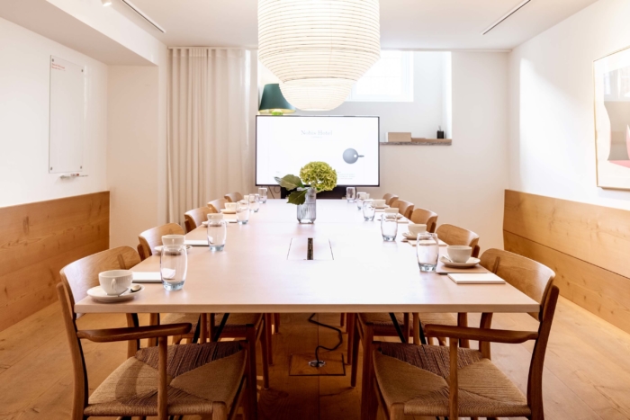 Nobis Hotel Copenhagen offers two functional meeting rooms, decorated with custom designed board tables, chairs from the Danish designer Carl Hansen, as well as adjustable TV screens with Airtame for wireless screen mirroring. Our private meeting rooms are perfect guests who wants a complete meeting experience with first class service and gastronomic features.